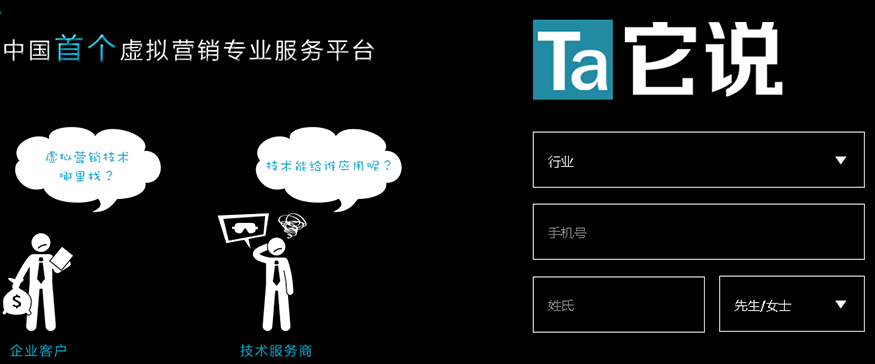 在對接服務(wù)過程中,“它說”已經(jīng)積累了大量行業(yè)客戶,并把這些行業(yè)客戶的需求進(jìn)行分析整理,然后深入到行業(yè)研究的營銷需求,做成面向行業(yè)的整合營銷產(chǎn)品向客戶推廣。“它說”希望通過整合VR/AR技術(shù)服務(wù)商的各種技術(shù),總結(jié)其中的應(yīng)用價(jià)值及其延展性,為B端客戶提供各種方式不同但具體可行的營銷方案。“它說”的短期計(jì)劃是成為行業(yè)里最大的一個(gè)企業(yè)級(jí)的訂單入口,將來也會(huì)布局自媒體這一塊,這樣,可以在社交媒體方面打造一個(gè)流量很大的To C端的入口。同時(shí),“它說”會(huì)跟合作伙伴籌劃各種商業(yè)活動(dòng)和培訓(xùn)服務(wù),但不會(huì)放棄自己主營的核心業(yè)務(wù),這是“它說”起家并立足的一個(gè)根基。