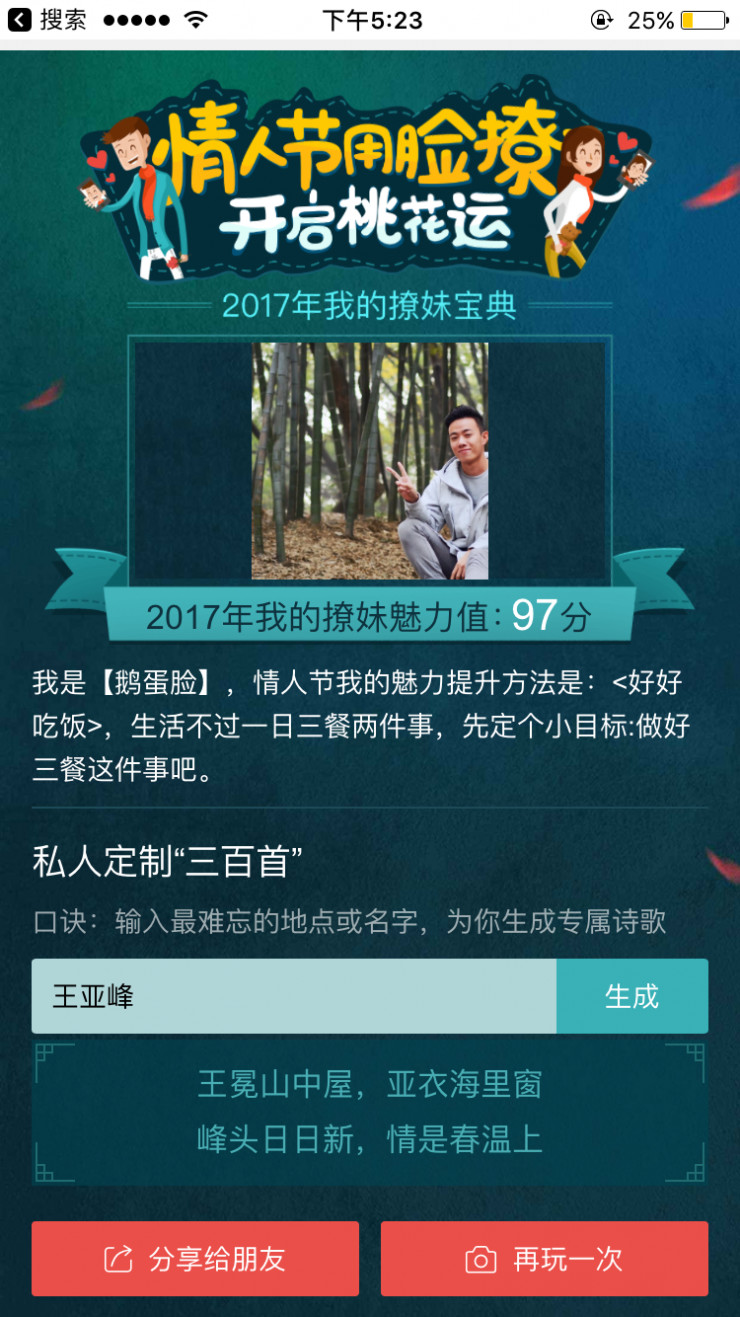 3、情人節(jié)將至,百度推出基于 AI 魅力值測(cè)評(píng)和詩歌自動(dòng)生成主題功能
