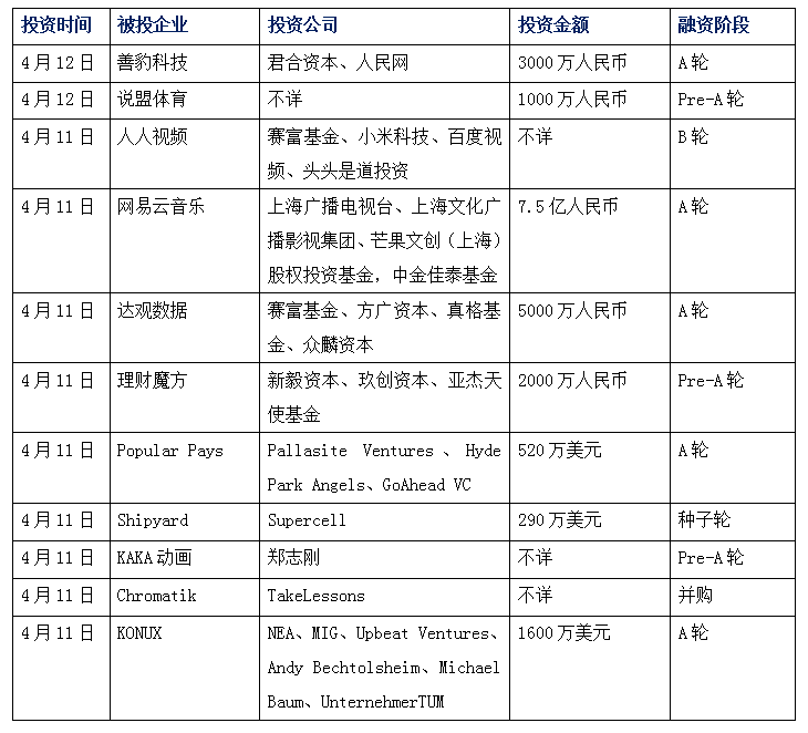 今日娛投:善豹科技獲千萬A輪融資,資本青睞游戲業(yè);網(wǎng)易云音樂獲7.5億融資,估值80億躋身獨角獸;理財魔方獲Pre-A輪融資,專注2C智能投顧服務(wù)
