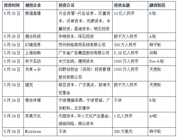 今日娛投:熊貓直播獲10億投資,月活用戶8000萬;微念科技完成A輪融資,專注短視頻網(wǎng)紅品牌孵化;幻境視界獲百萬投資,打造VR家裝平臺(tái)WO+