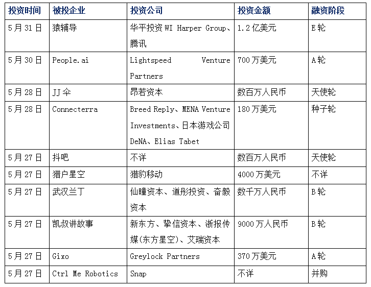今日娛投:猿輔導(dǎo)完成E輪融資,躋身獨(dú)角獸行列;用AI幫助銷售人員優(yōu)化工作流程,People.ai獲A輪融資;自助健身倉(cāng)“抖吧”獲數(shù)百萬(wàn)天使投資