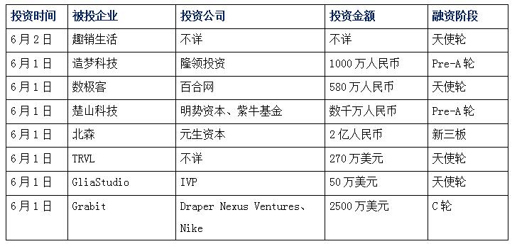 今日娛投:線上出行服務(wù)平臺(tái)“趣銷生活”完成天使輪融資;VR游戲平臺(tái)“造夢(mèng)科技”獲千萬(wàn)投資;大數(shù)據(jù)分析平臺(tái)“數(shù)極客”完成百萬(wàn)融資
