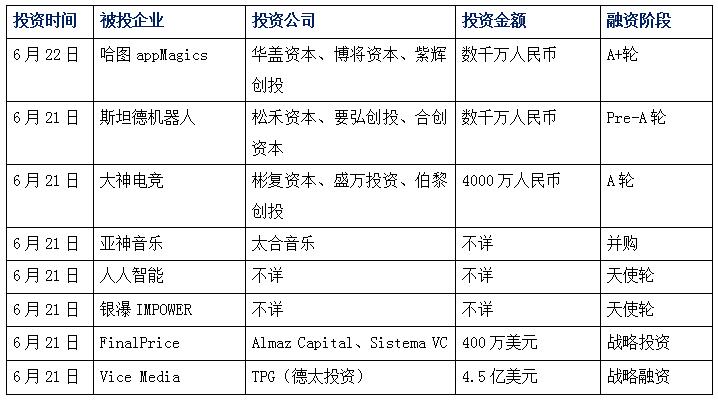 今日娛投:哈圖appMagics獲千萬融資,華蓋資本領(lǐng)投;斯坦德機(jī)器人獲千萬投資,將擴(kuò)大工業(yè)領(lǐng)域布局;大神電競獲千萬投資,將打造電競界夢工廠