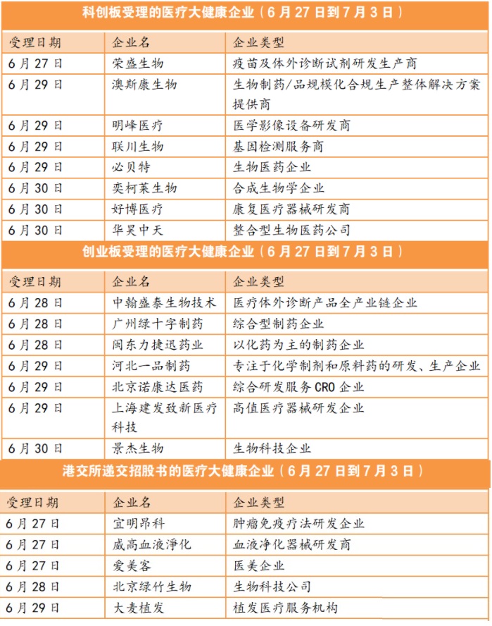 要知道,科創(chuàng)板在今年的1-5月,只受理了世和基因1家醫(yī)療大健康企業(yè)。但在6月,則一口氣受理了14家,其中有8家企業(yè)是在上周受理的??梢?,醫(yī)療大健康企業(yè)們的IPO進(jìn)程已處在集體加速期。