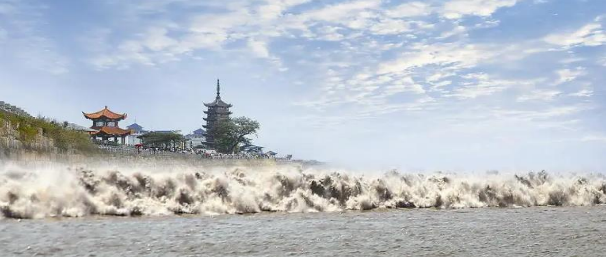 你看那錢塘潮水既有滌蕩裹挾黃沙和淤泥的勇氣,又有奔涌入海擁抱碧水藍(lán)天的胸襟。錢塘江,半是淤泥半是藍(lán)、立于中國看世界,她是中國藍(lán)。
