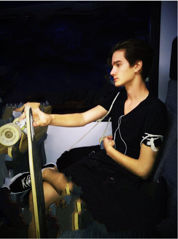 7 油畫里走來中的憂郁王子—玩滑板的男孩-德國高鐵手機抓拍