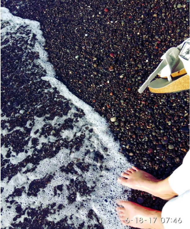 10 希臘圣托里尼黑沙灘的泡沫