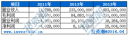 招股書(shū)顯示,2011年-2013年,聚美優(yōu)品營(yíng)業(yè)收入依次為2178.8萬(wàn)美元、2.33億美元、4.83億美元,年復(fù)合增長(zhǎng)率高達(dá)180%;自2012年第二季度實(shí)現(xiàn)盈利以來(lái),聚美優(yōu)品已持續(xù)7個(gè)季度盈利,其2012年、2013年凈利潤(rùn)分別810.4萬(wàn)美元和2500.4萬(wàn)美元。以下為聚美優(yōu)品2011年-2013年部分財(cái)務(wù)數(shù)據(jù)(單位:美元)。
