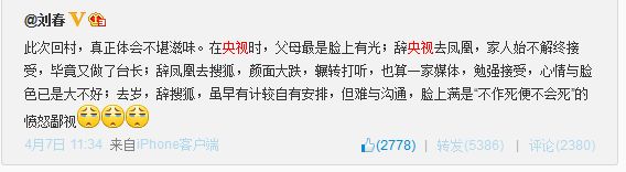 劉春此次賣身愛奇藝,官方并沒有透露價(jià)位,但想必價(jià)格不菲,雖然劉春在微博中表現(xiàn)得似乎很苦逼。