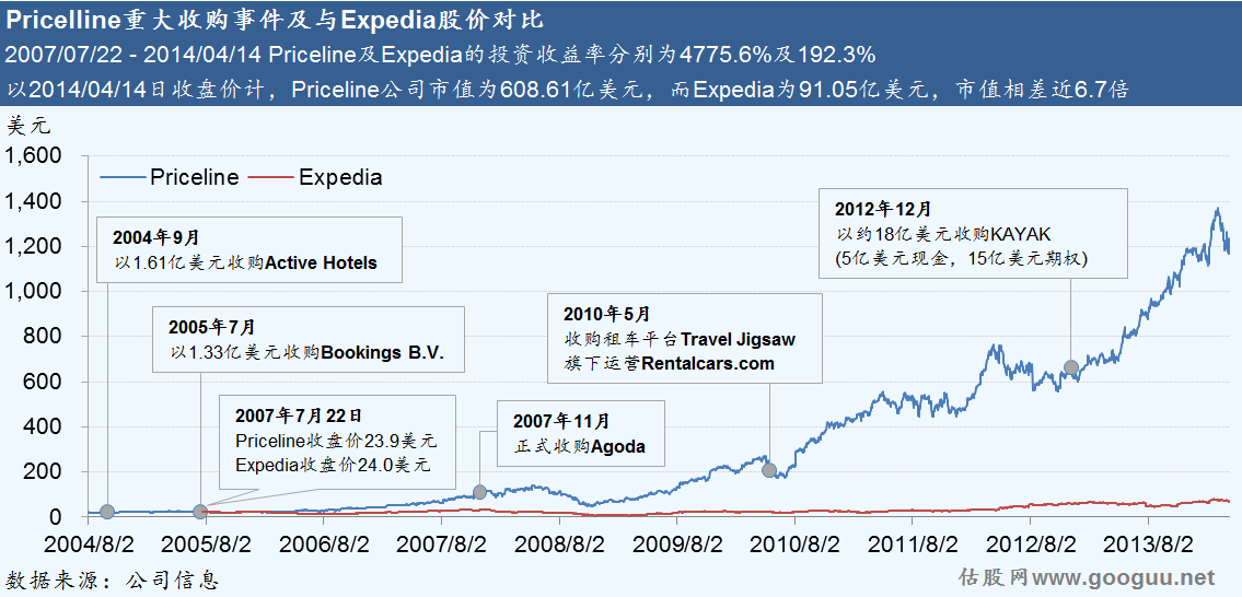 主要得益于一系列的海外收購,實現(xiàn)全面超越Expedia