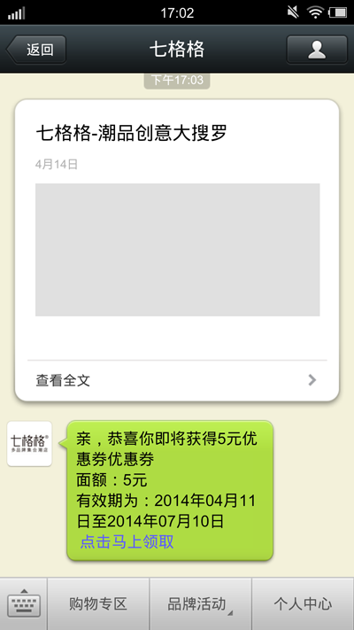 首先我關(guān)注了七格格的公眾號(hào),確實(shí)是個(gè)訂閱號(hào),因?yàn)橛形⑿耪J(rèn)證所以它有菜單。