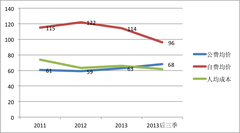 薄利多銷、量多價(jià)優(yōu)是常理,過去也沒有人認(rèn)為愛康國(guó)賓給企業(yè)很大的折扣有任何不妥。但投股章程披露的信息讓人們第一次準(zhǔn)確地知道了愛康體檢的平均成本(房租、裝修、設(shè)備等固定成本加工資、耗材、試劑等可變成本),2011?2012?2013連續(xù)三個(gè)財(cái)年,公費(fèi)體檢支付的金額都低于這個(gè)數(shù),直到2013年后三個(gè)季度才有所改觀。薄利多銷,四個(gè)字中的關(guān)鍵不是薄、不是多、不是銷,而是利。每單生意賺一塊錢與賠一塊錢有質(zhì)的差別,差別大到足以決定企業(yè)的生死。