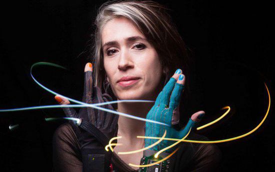 帶上 Mi.Mu Glove 之后,你可以直接用手勢動作來控制不同的樂器、音效、音量。舉個例子,想要達到讓房間某處有某種特定的聲音,你只需要用手指點某個位置,“要有聲”,房間的某個角落音響就會響起;如果你想要聲量提高,只要舉起手即可實現(xiàn);扭動手腕即可改變音效。i.Mu Glove 在音樂表演中的視覺效果像是魔法一樣,隨著動作和手勢,音樂的變幻信手拈來。這個手套還有一個很酷的點,就是可以與各種已有的音頻處理和輸出軟件連接使用,作為音樂創(chuàng)作者,你可以自己為了自己的表演設(shè)置不同的手勢和動作。