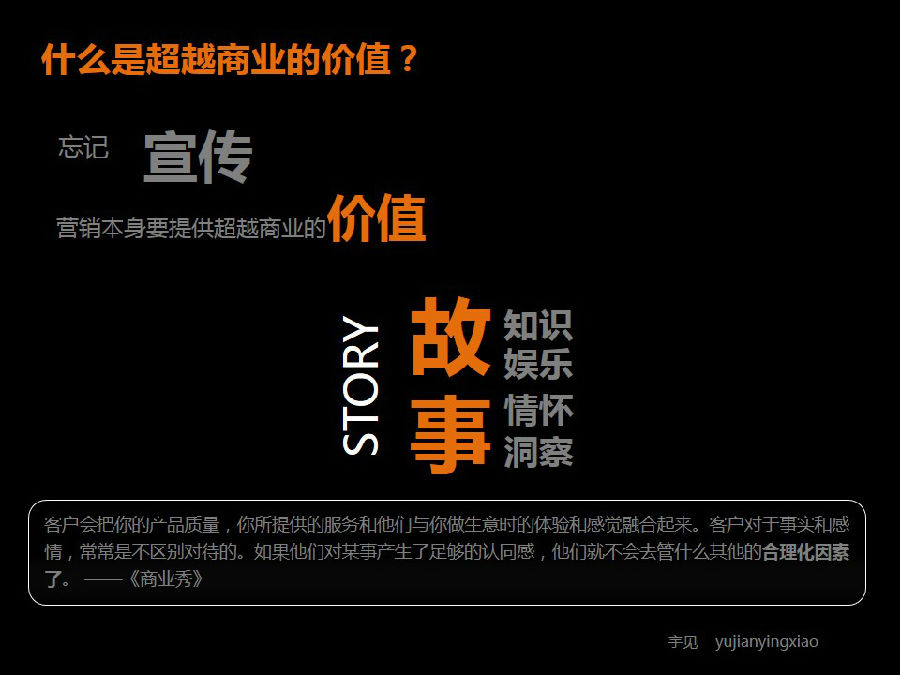 什么叫提供“超越商業(yè)的價值”?你賣東西給我,我付錢,交易完成,這是商業(yè)本身的實現(xiàn)過程,這是合理合邏輯,你把這個過程本身做得再完美也只是一個“好”字,而已。