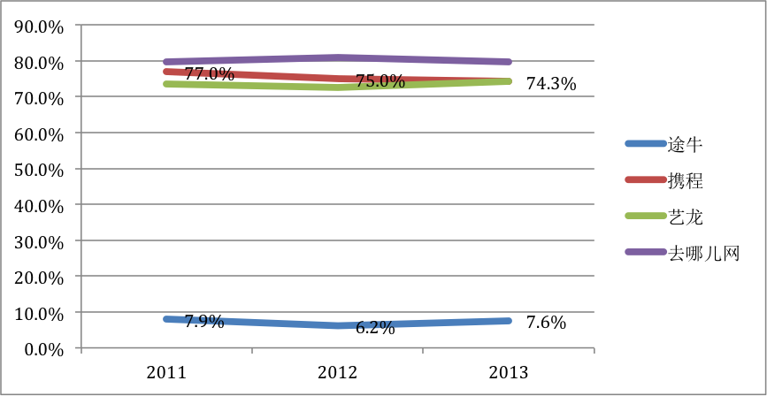 把途牛網(wǎng)與其它在線旅游公司對照,發(fā)現(xiàn)毛利潤率低得驚人。