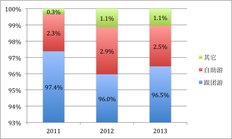 經(jīng)過數(shù)據(jù)的還原修正,按業(yè)內(nèi)通用的收入確認(rèn)方式,2013年?duì)I收將從19.62億降至2.01億元,2012年?duì)I收從11.20億元降至1.04億元,2010年?duì)I收從7.65億降至7400萬元。結(jié)構(gòu)如下,可以看到自助游在營收中已占可觀的份額且呈現(xiàn)持續(xù)增長態(tài)勢。