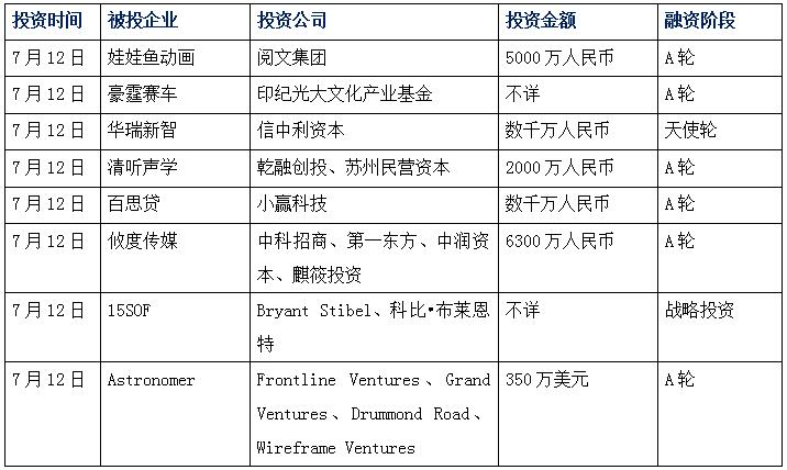今日娛投:娃娃魚(yú)獲千萬(wàn)投資,網(wǎng)絡(luò)動(dòng)畫(huà)蛋糕初現(xiàn)雛形;豪霆賽車(chē)獲A輪融資,打造最頂尖連鎖賽車(chē)場(chǎng)運(yùn)營(yíng)商;華瑞新智獲天使融資,專(zhuān)注市場(chǎng)開(kāi)拓