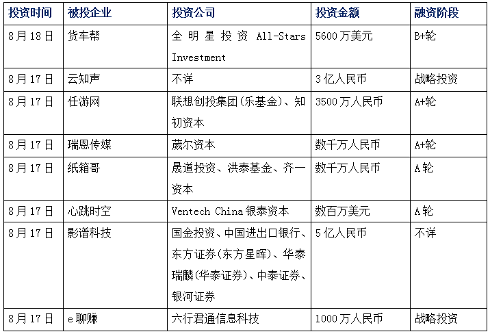 今日娛投:貨車幫完成千萬美元融資,全明星基金領(lǐng)投;云知聲獲億元投資,將加大AI芯片研發(fā);任游網(wǎng)獲A+輪融資,提供一站式場景化服務