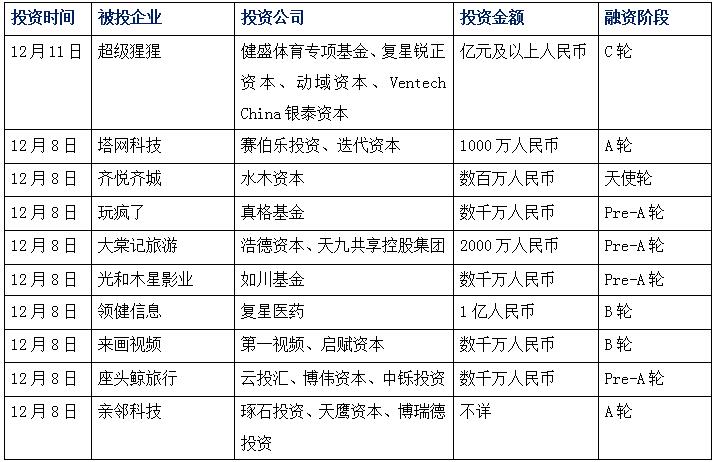 12月11日,健身服務(wù)品牌“超級(jí)猩猩”宣布完成億元及以上人民幣的C輪融,由健盛體育專項(xiàng)基金領(lǐng)投,復(fù)星銳正資本、動(dòng)域資本和Ventech China銀泰資本跟投。