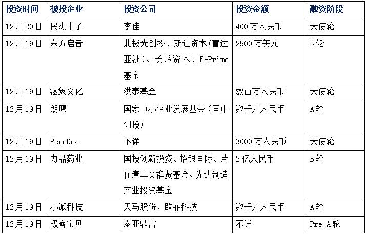 今日娛投:民杰電子獲百萬融資,李佳領(lǐng)投;東方啟音獲B輪融資,深耕言語治療;涵象文化獲天使融資,洪泰基金領(lǐng)投