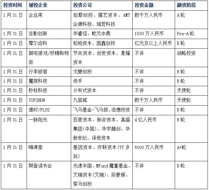 今日娛投:企業(yè)灣獲A輪融資,為企業(yè)提供一站式服務(wù);吉影科技獲千萬融資,投后估值達1億;摩爾齒科獲B輪融資,松柏資本參投