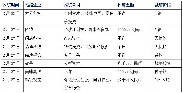 今日娛投:才云科技獲新一輪融資,華創(chuàng)資本領(lǐng)投;阿拉丁獲千萬融資,估值近10億;閃店科技獲天使投資,泰來資本出資
