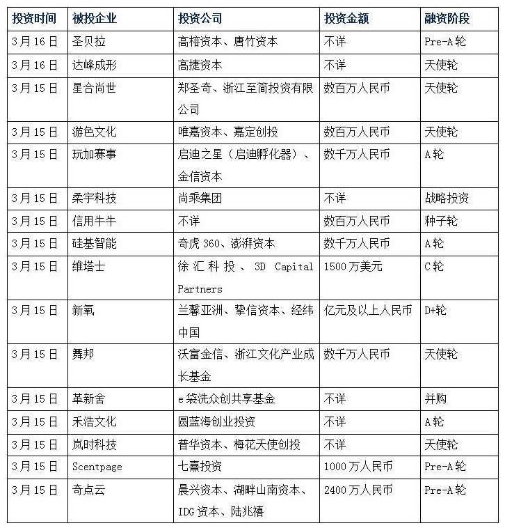 3月15日,網(wǎng)絡游戲開發(fā)及游戲美術服務提供商“維塔士”宣布獲得1500萬美元的C輪融資。據(jù)悉,本輪投資方為徐匯科投和3D Capital Partners。