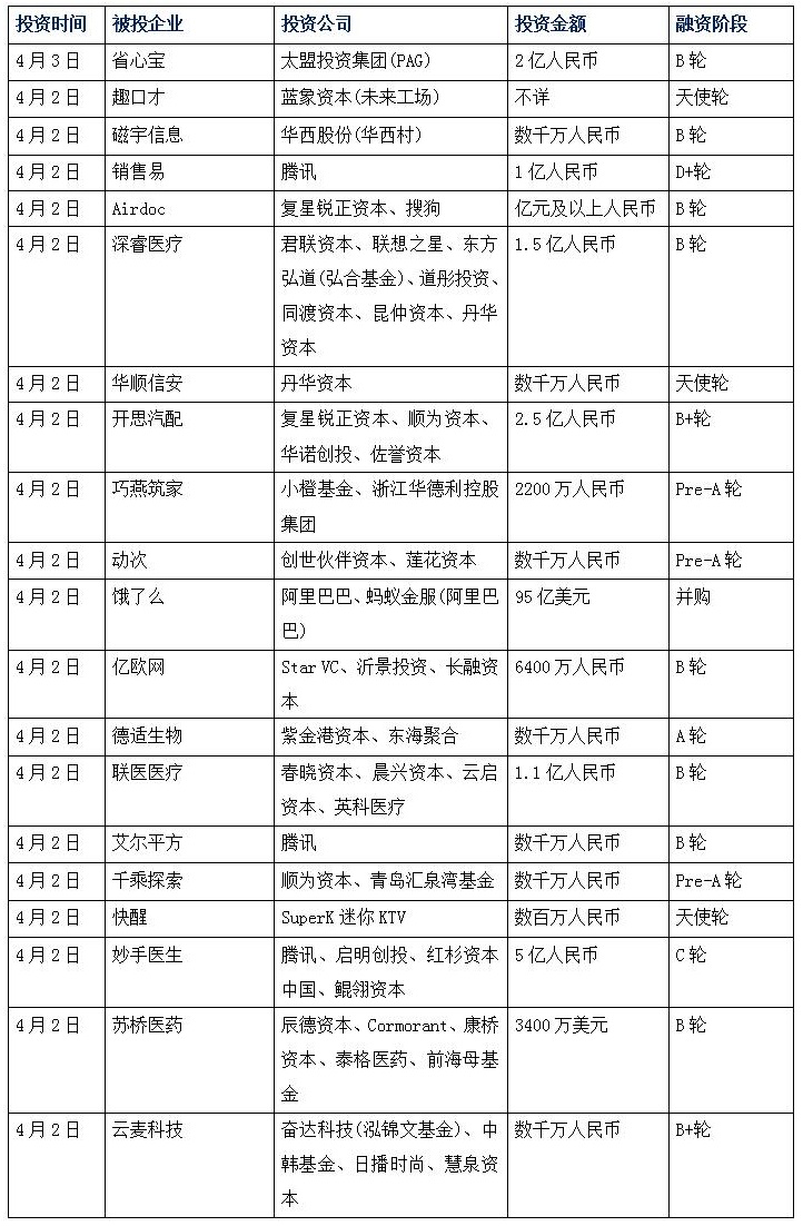 4月2日,人工智能醫(yī)療應(yīng)用開(kāi)發(fā)商“深睿醫(yī)療”宣布完成1.5億人民幣的B輪融資,由君聯(lián)資本領(lǐng)投,聯(lián)想之星、東方弘道(弘合基金)、道彤投資、同渡資本、昆仲資本、丹華資本等機(jī)構(gòu)跟投。