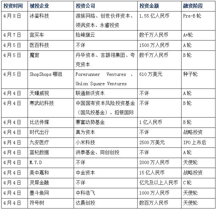 今日創(chuàng)投:冰鑒集團獲億元融資,游族網(wǎng)絡(luò)領(lǐng)投;醫(yī)百科技獲A輪融資,提供SaaS云服務(wù);符號樹獲天使融資,達晨創(chuàng)投出資